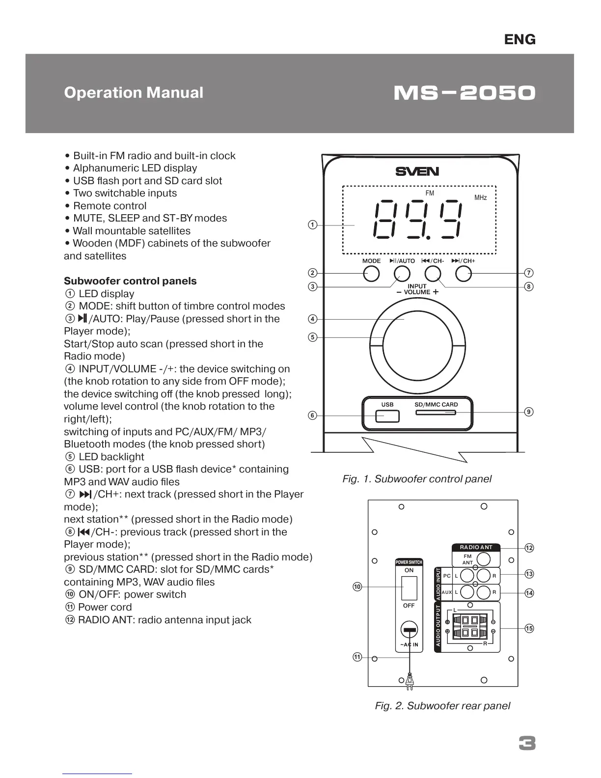 Fig. 1. Subwoofer control panel