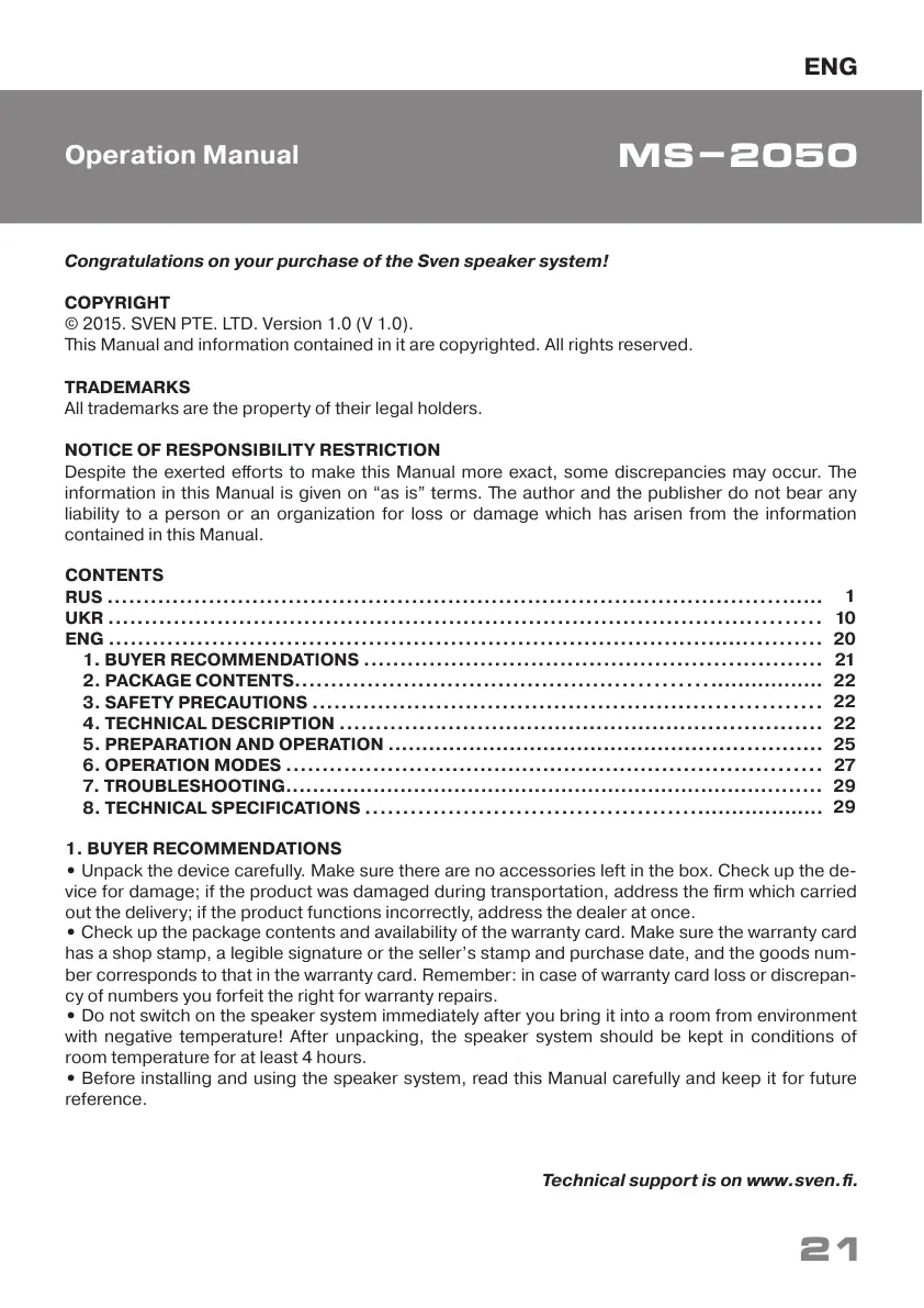 © 2015. SVEN PTE. LTD. Version 1.0 (V 1.0).