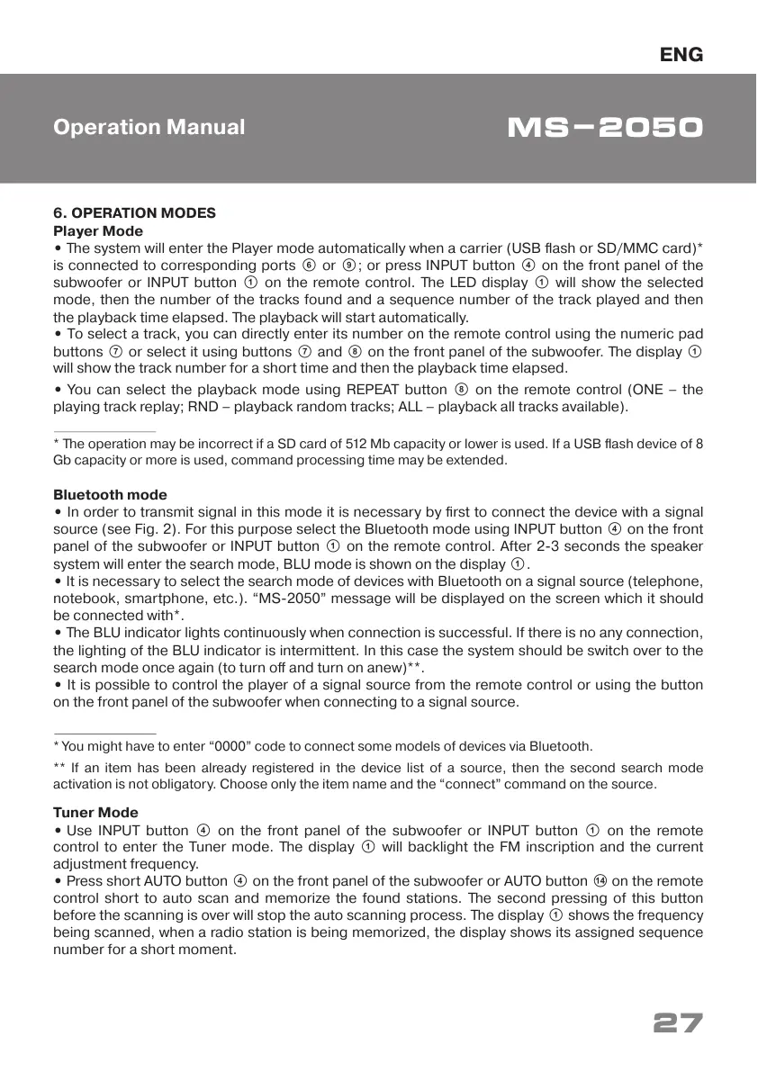 * You might have to enter “0000” code to connect some models of devices via Bluetooth.