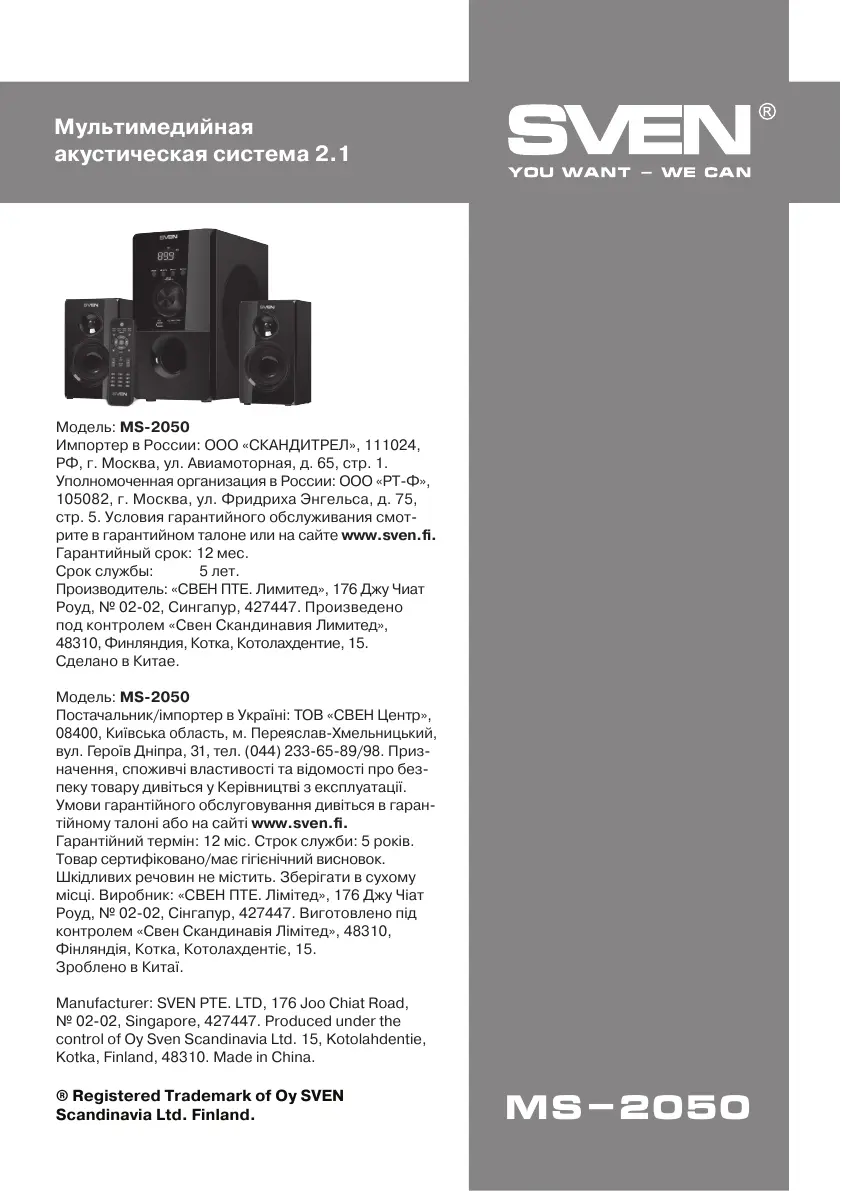 рите в гарантийном талоне или на сайте www.sven.fi.