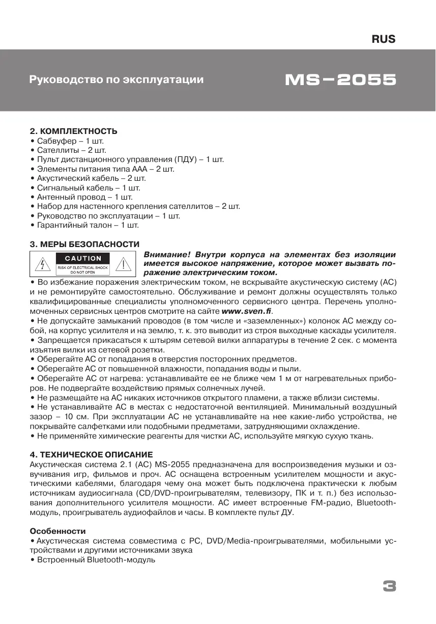 Акустическая система 2.1 (АС) MS-2055 предназначена для воспроизведения музыки и оз-