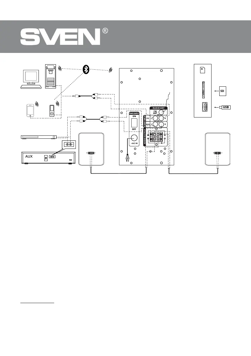 • Рівень гучності сабвуфера налаштуйте кнопоками SW+/- f на ПДУ.