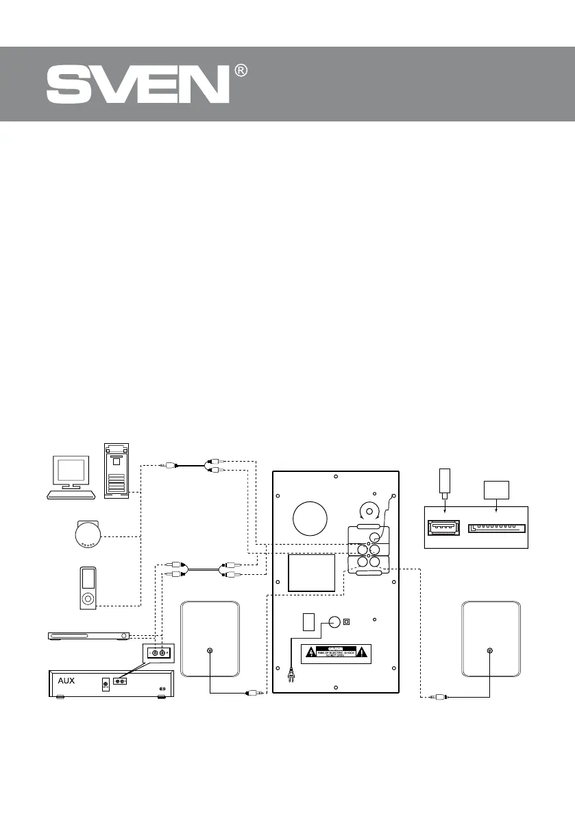 • Для підключення АС до ПК, МР3/CD-плеєрів використовуйте сигнальний кабель 2RCA до mini-