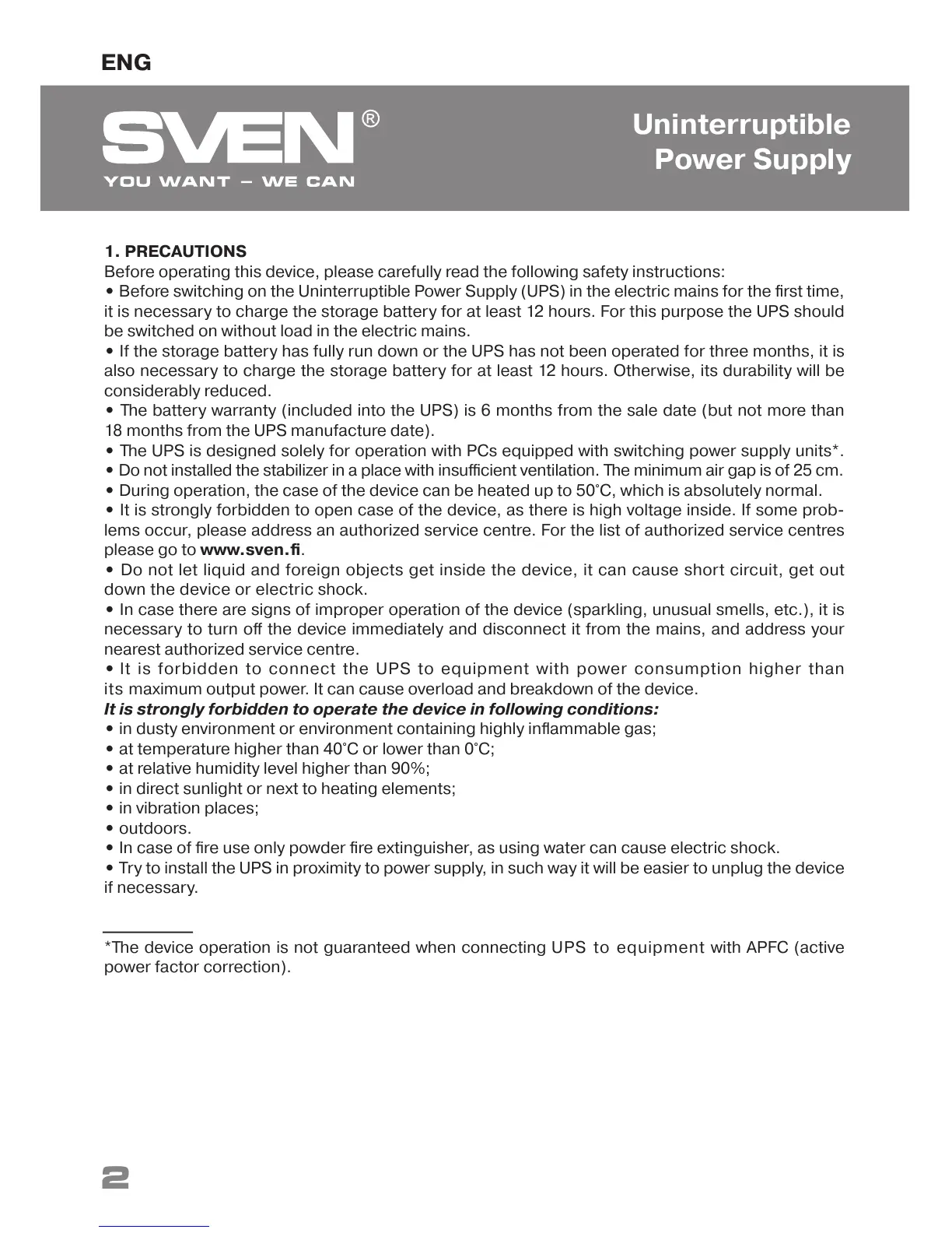• The UPS is designed solely for operation with PCs equipped with switching power supply units*.