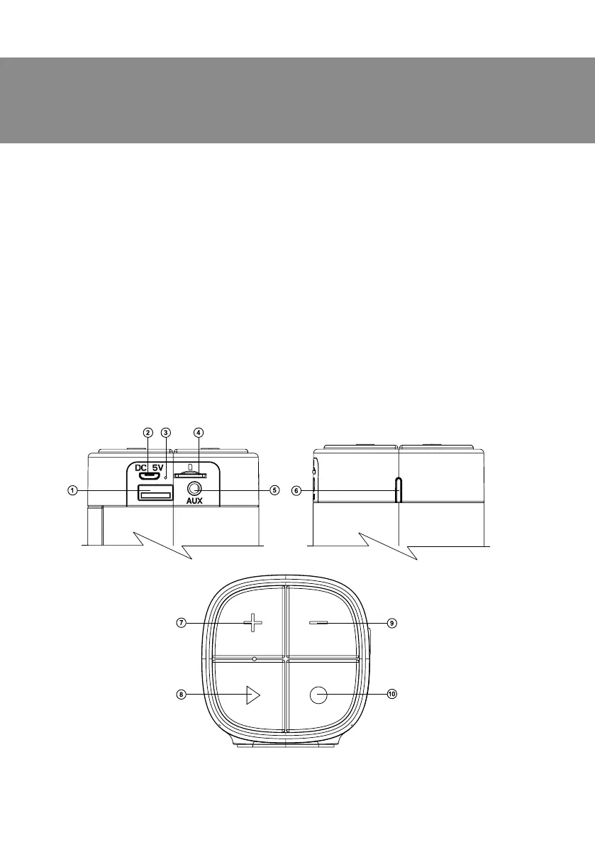 j Switch mode button: Bluetooth/FM/Player/AUX (short pressing);