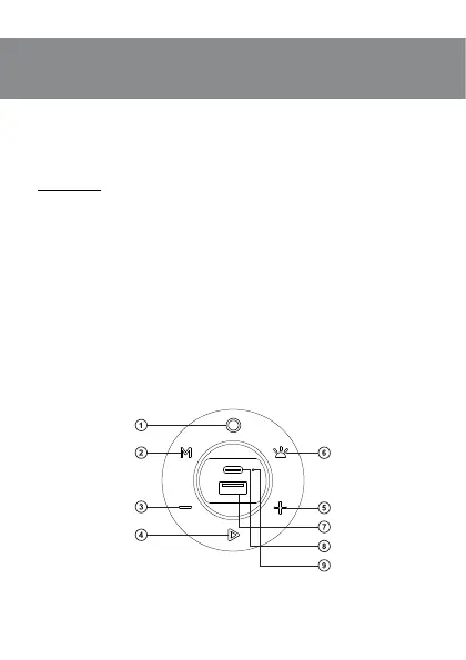 d Кнопка воспроизведение/пауза (короткое нажатие в режиме Bluetooth и Проигрывателя);