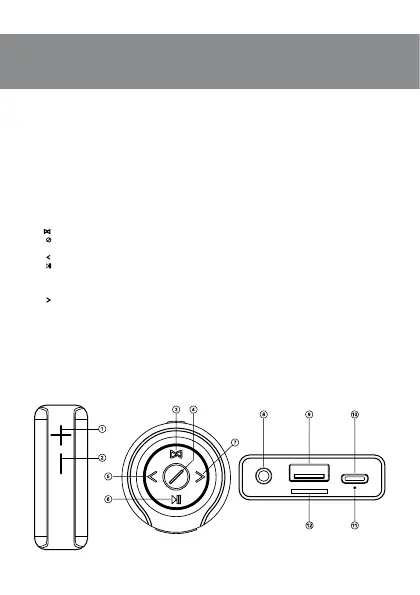 Switch mode button: Bluetooth/FM/Player (short pressing)