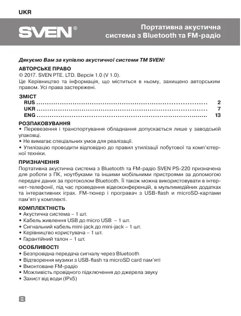 © 2017. SVEN PTE. LTD. Версiя 1.0 (V 1.0).