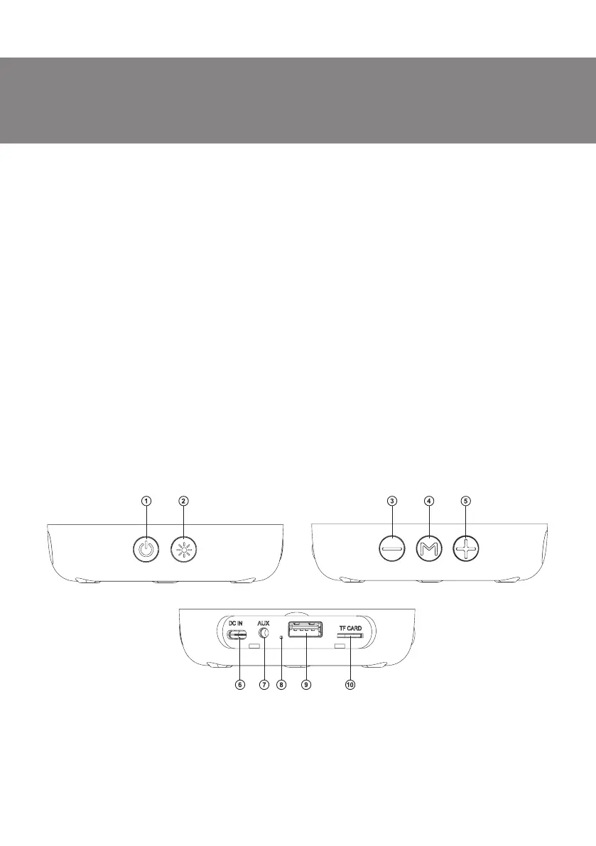 Переключение режимов работы: Bluetooth/Радио/Проигрыватель/AUX (длительное нажатие);