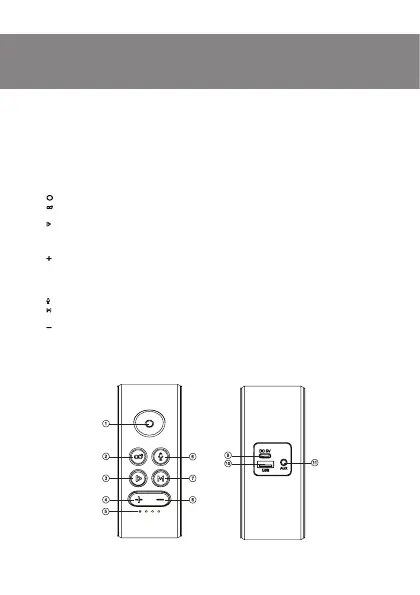 g : Switch mode button: Bluetooth/FM/Player/AUX (short pressing);