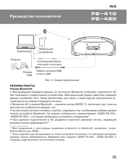 «SVEN PS-420», с которым необходимо установить соединение*.