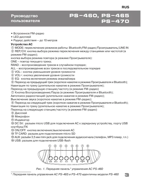 * Передняя панель управления АС PS-465 и PS-470 идентичны модели PS-460