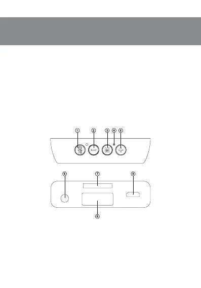 c Switch mode button: Bluetooth/FM/Player/AUX (short pressing); Change backlight