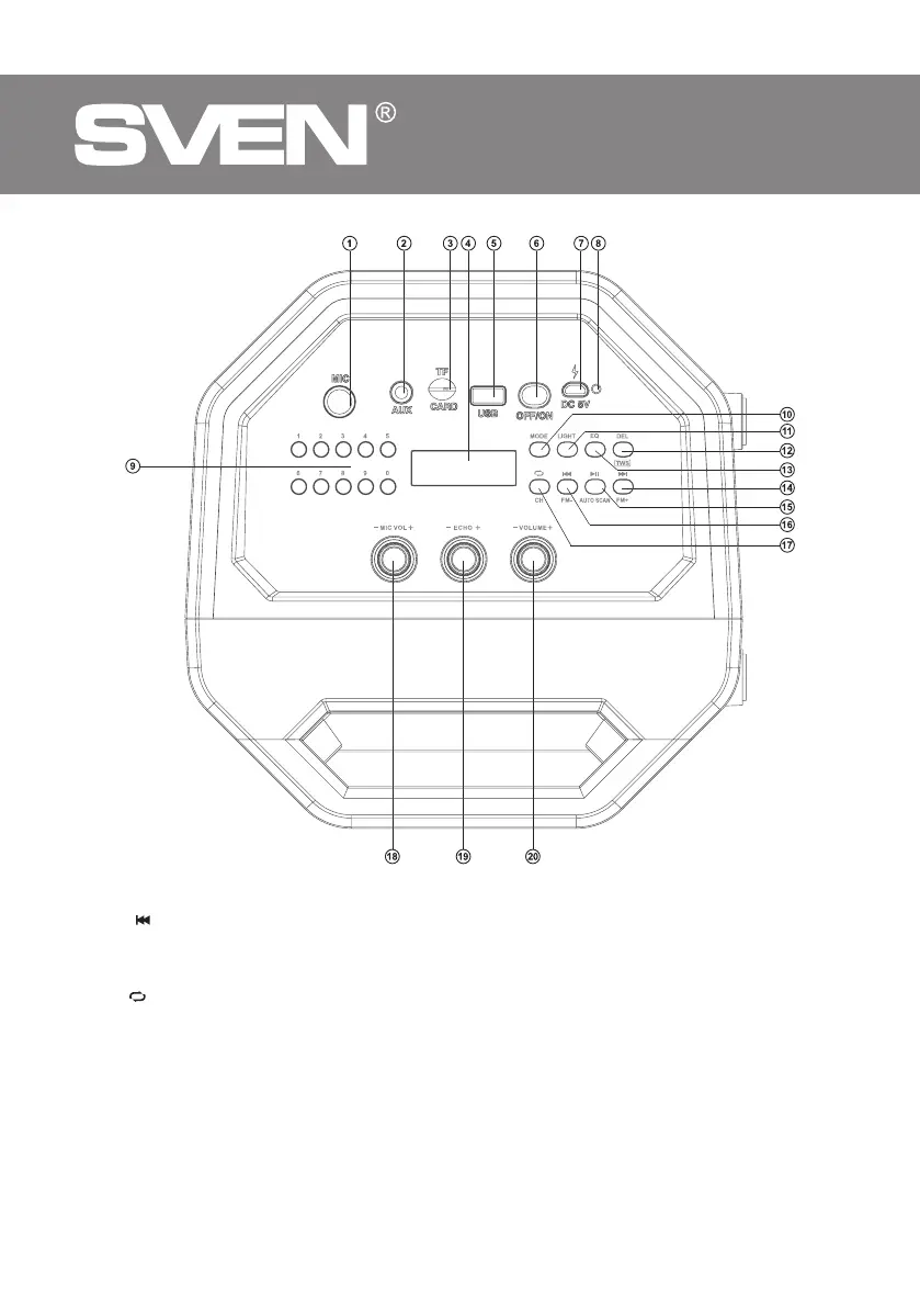 r MIC VOL +/-: ручка регулювання рівня гучності мікрофона