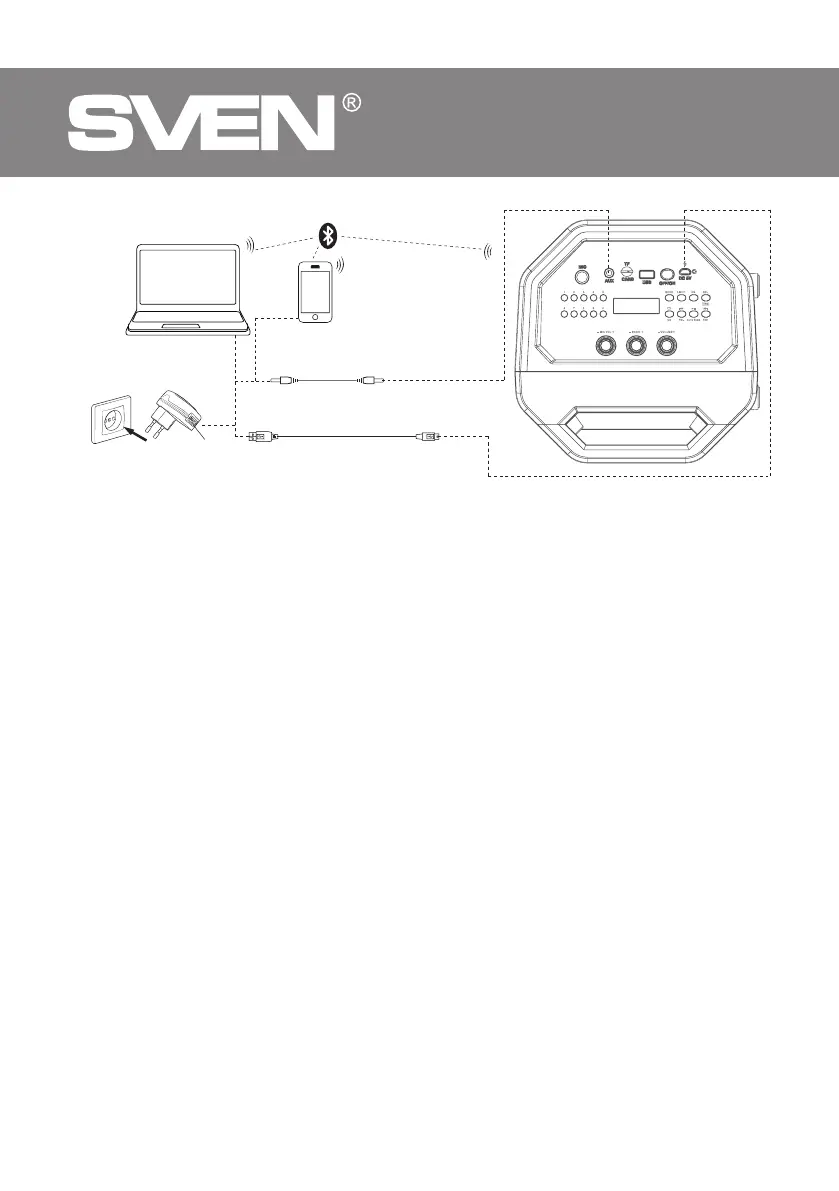 • Turn on the speaker system – press button МODE j several times until the display shows the