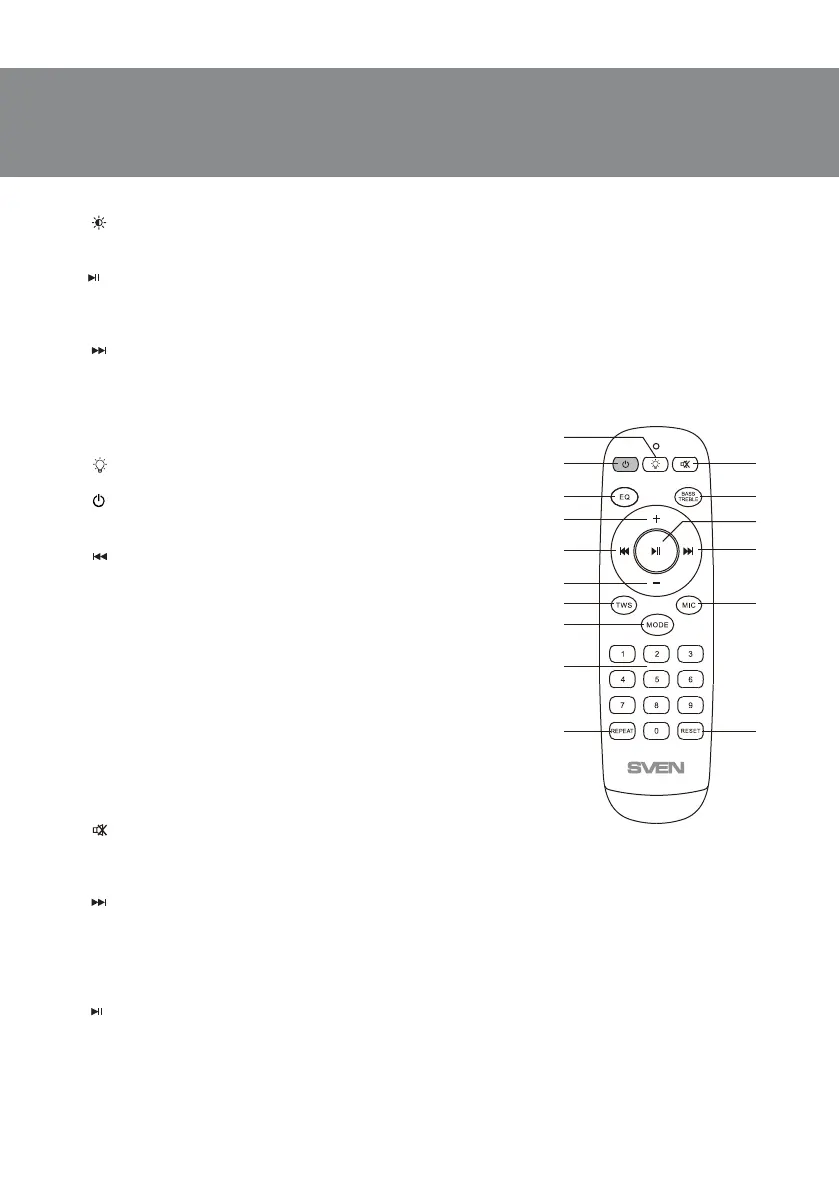 ку (длительное нажатие в режиме Проигрывателя иBluetooth); переход на следующую