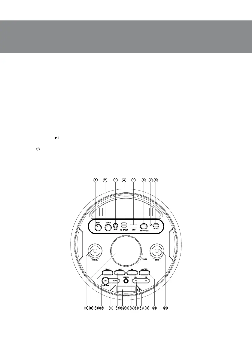 i MIC VOL +/-: microphone volume control knob.