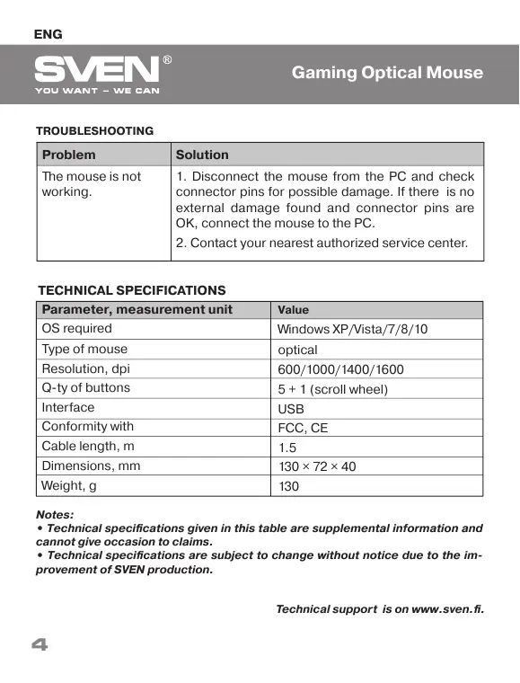 Technical support is on www.sven.fi.
