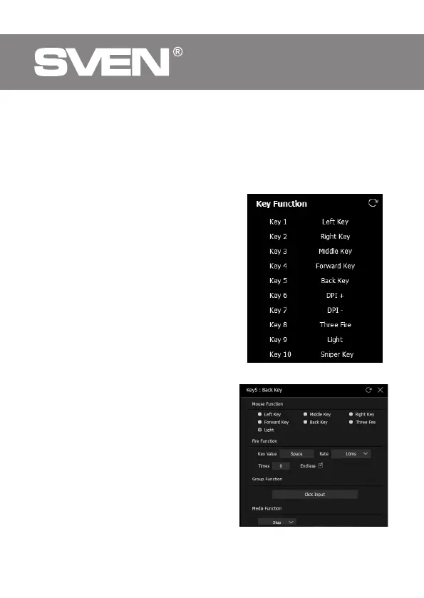 or list, opens a window with additional functions that can be reassigned. The following is a