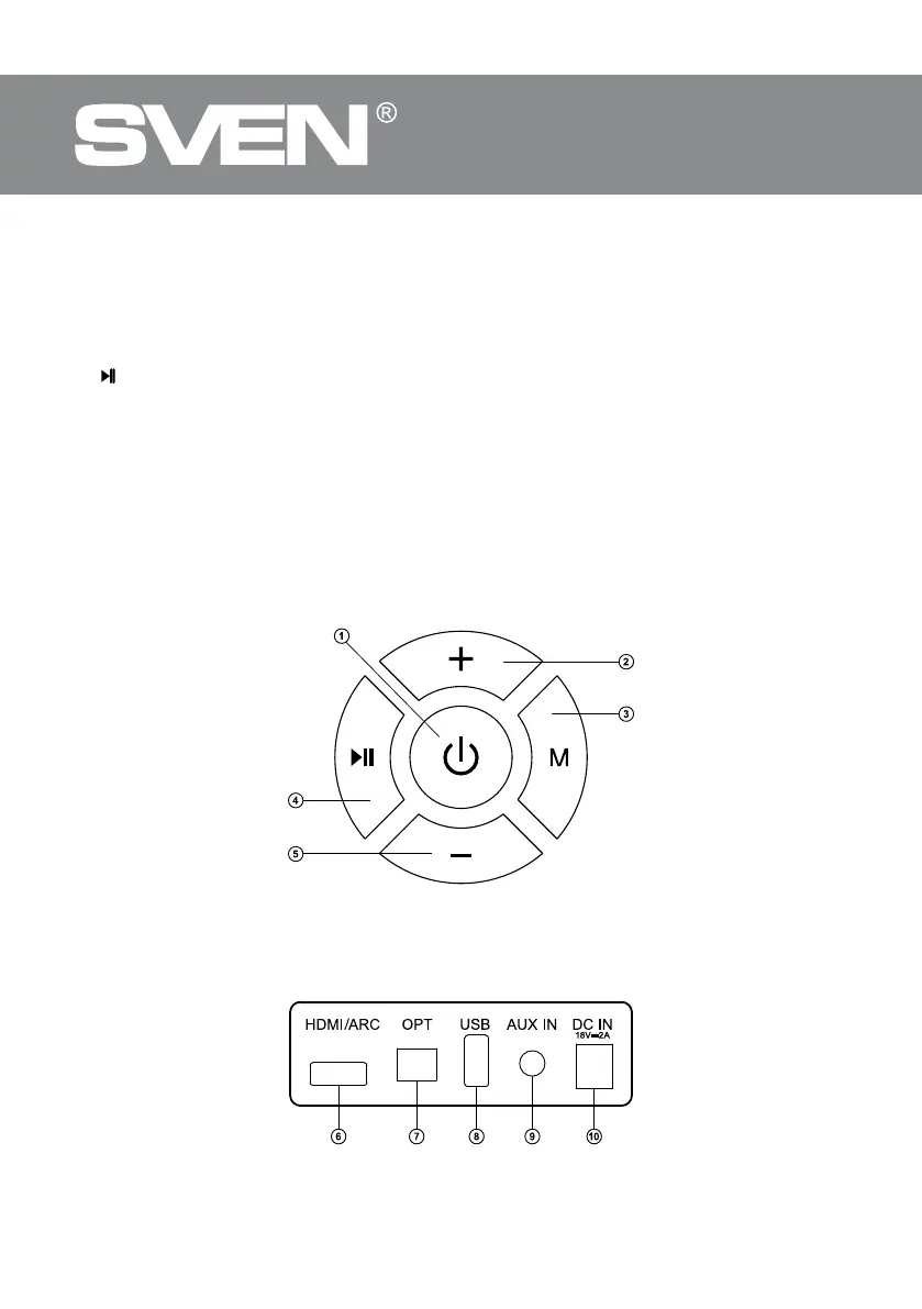 : Play/Pause button (short pressing in Player and Bluetooth mode);