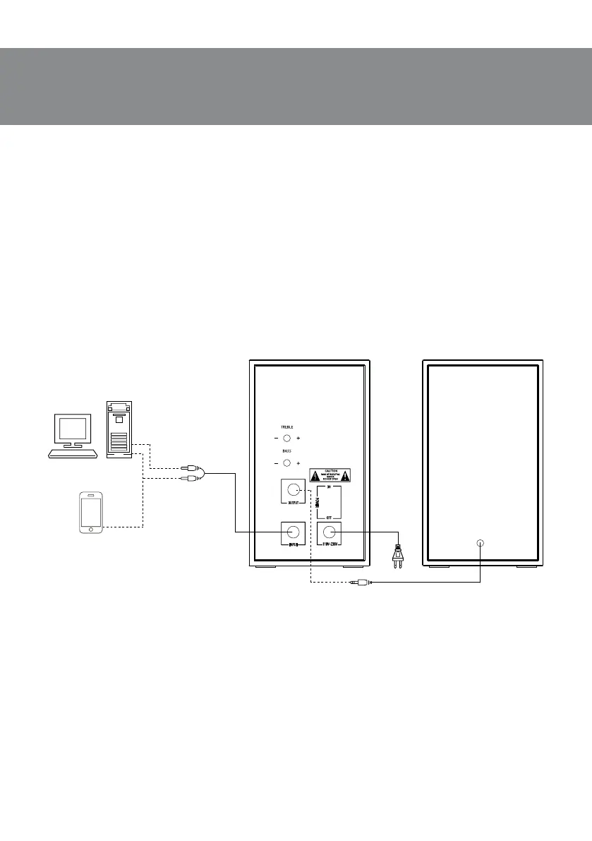 • Перед подключением убедитесь, что АС отключена от сети. Соедините с помощью аку-