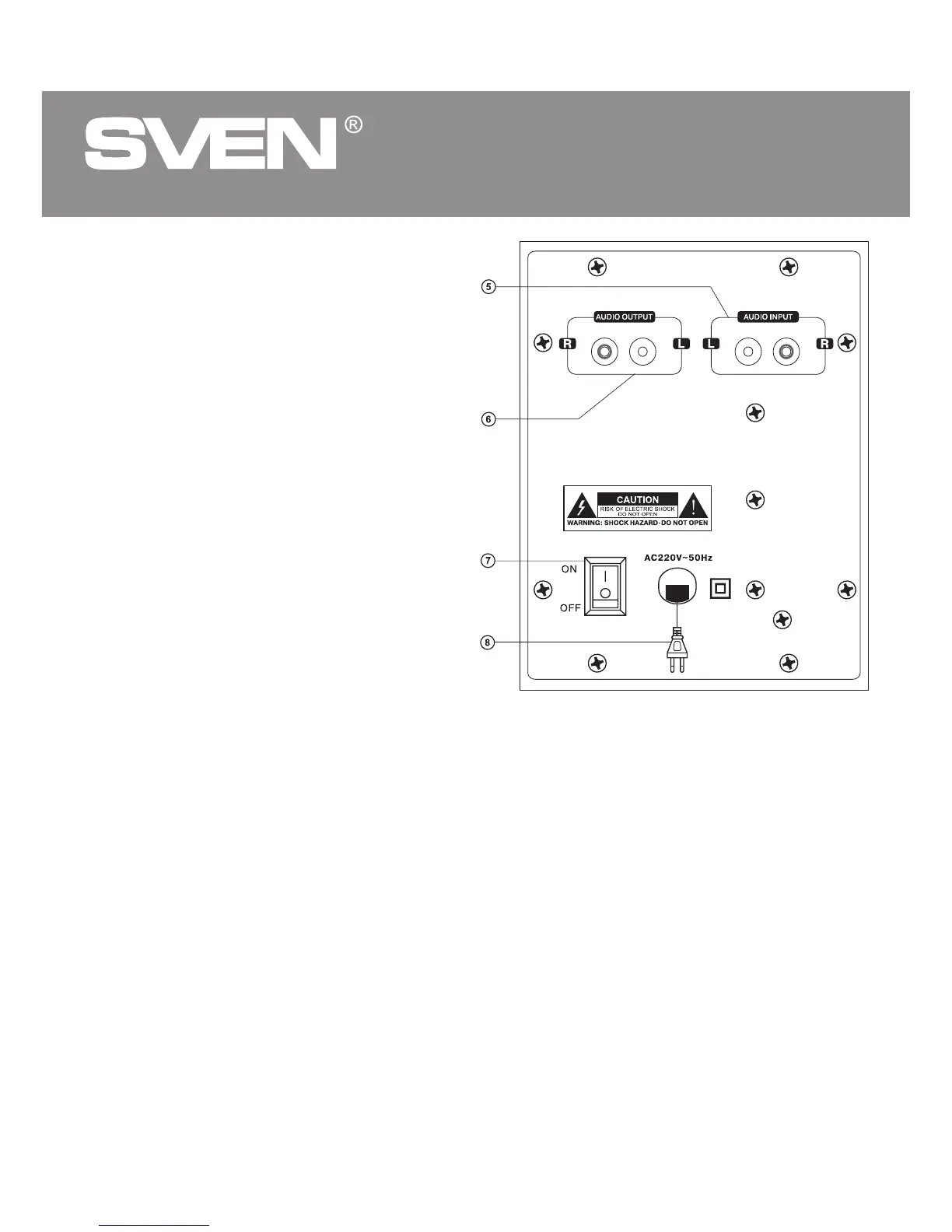 (AUDIO OUTPUT R) and the RCA jack of the left speaker to the white terminal of the subwoofer (AUDIO