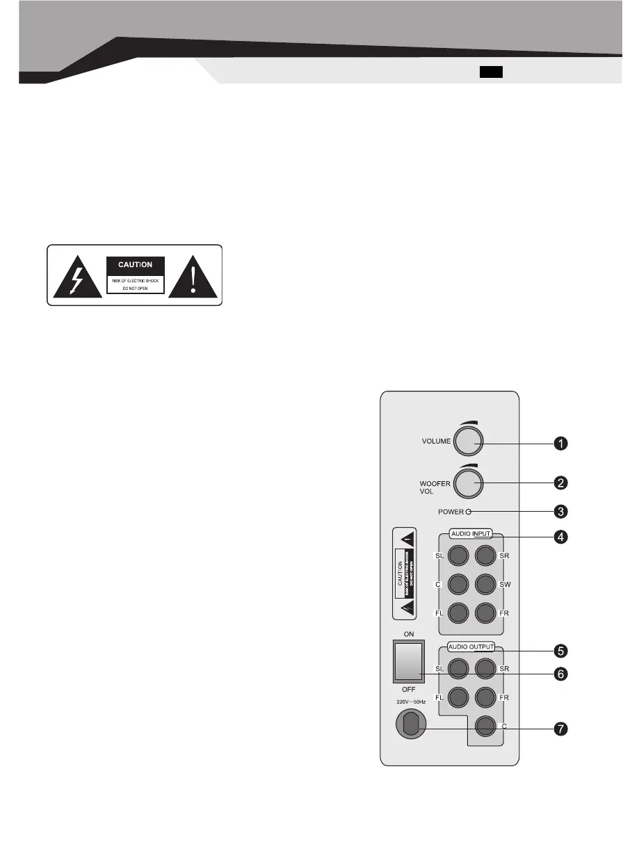 E Power output jack connect to left front speaker\right front speaker\