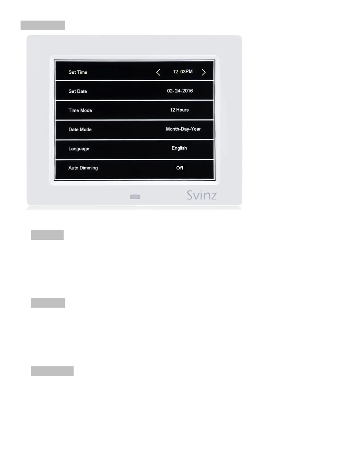 2. SET DATE: Press the MENU button to access the settings page. Press the DOWN button to