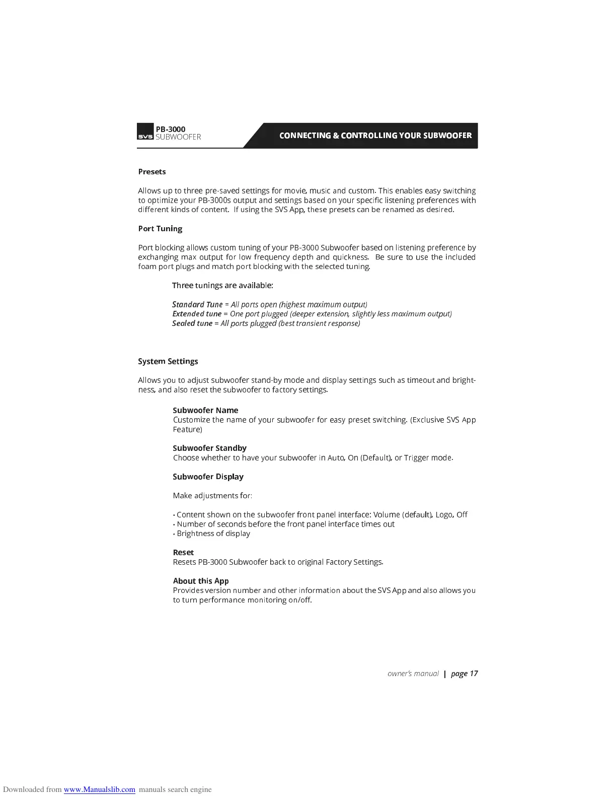 di erent kinds of content. If using the SVS App, these presets can be renamed as desired.
