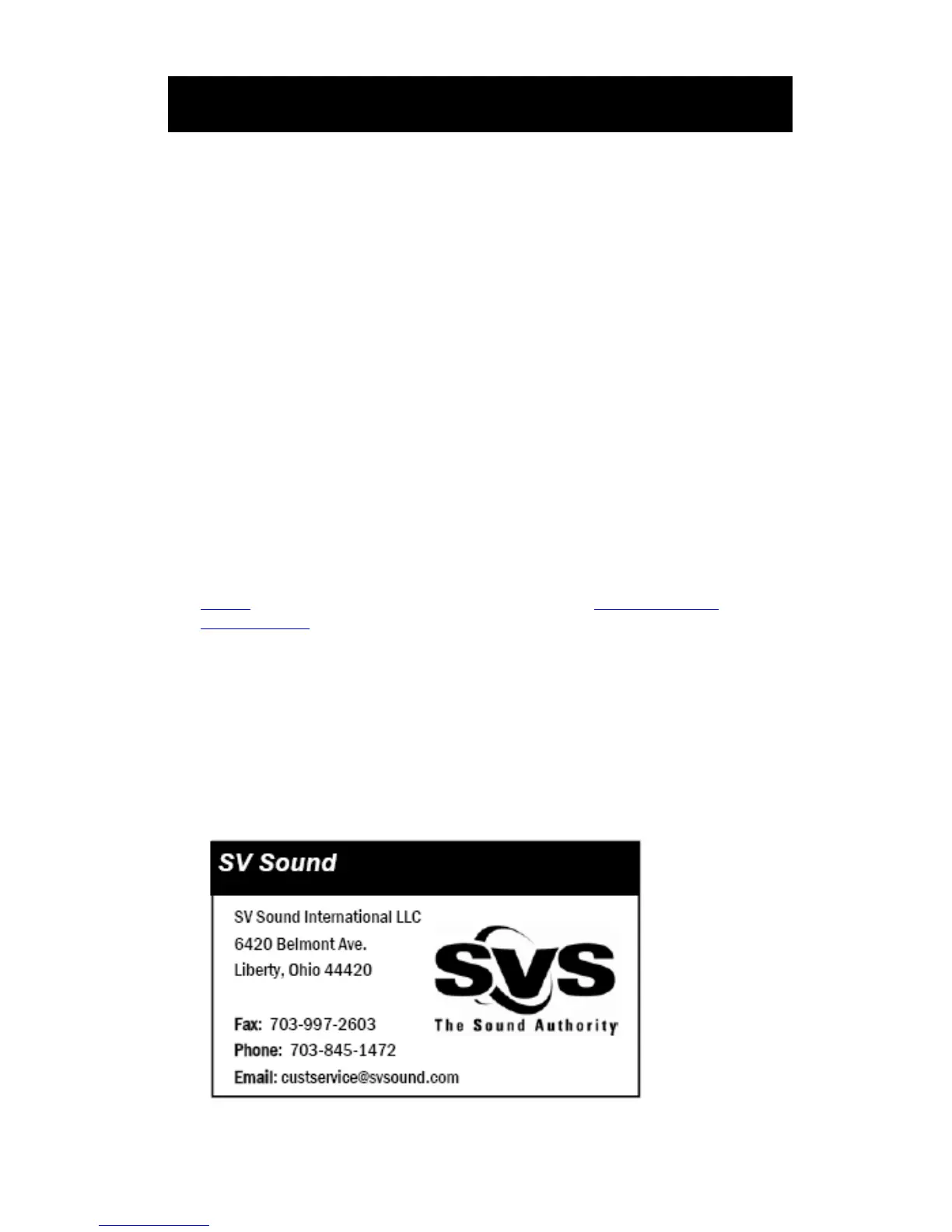contact SVS or if outside the USA your Dealer immediately and if possi-