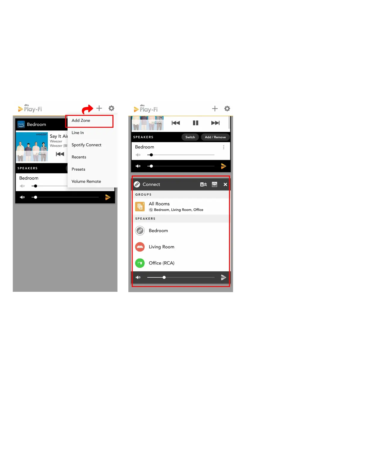 Play-Fi Start screen, where you can easily manage each Zone.