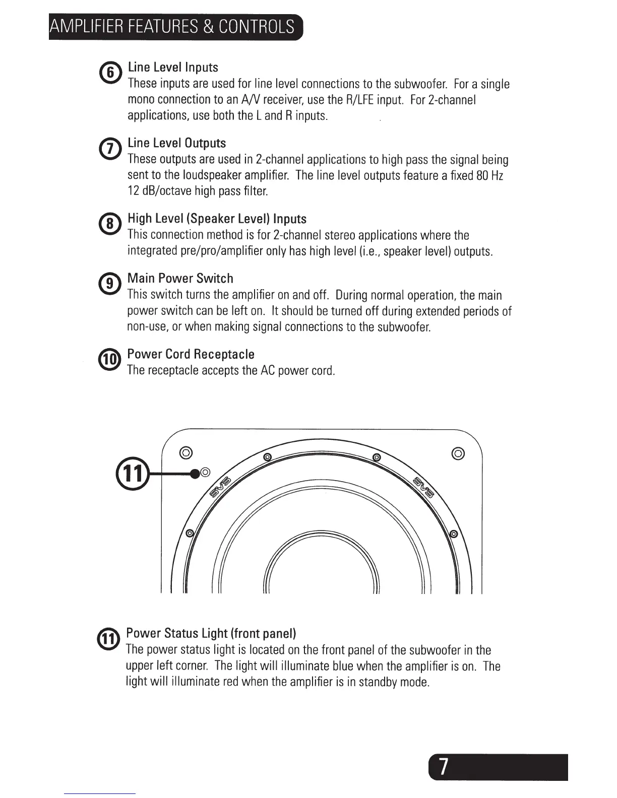 SVS SB-1000 - Line Level Inputs; Line Level Outputs; High Level (Speaker Level) Inputs; Main Power Switch