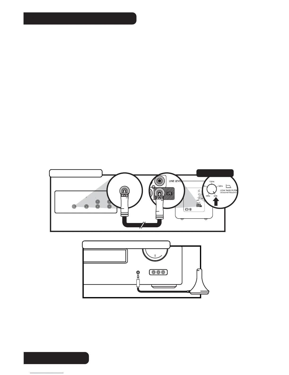 output jack to the Line Level R/LFE input on the subwoofer amplifier.