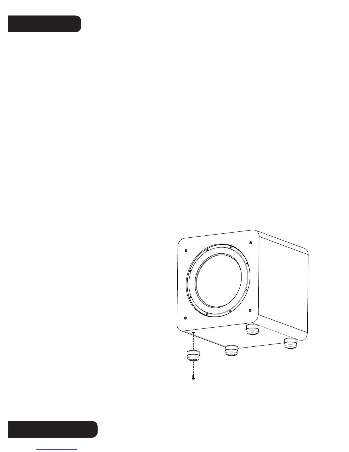 Important Notice: - Do not drag the subwoofer cabinet across the flooring with the Isolation feet installed. This may