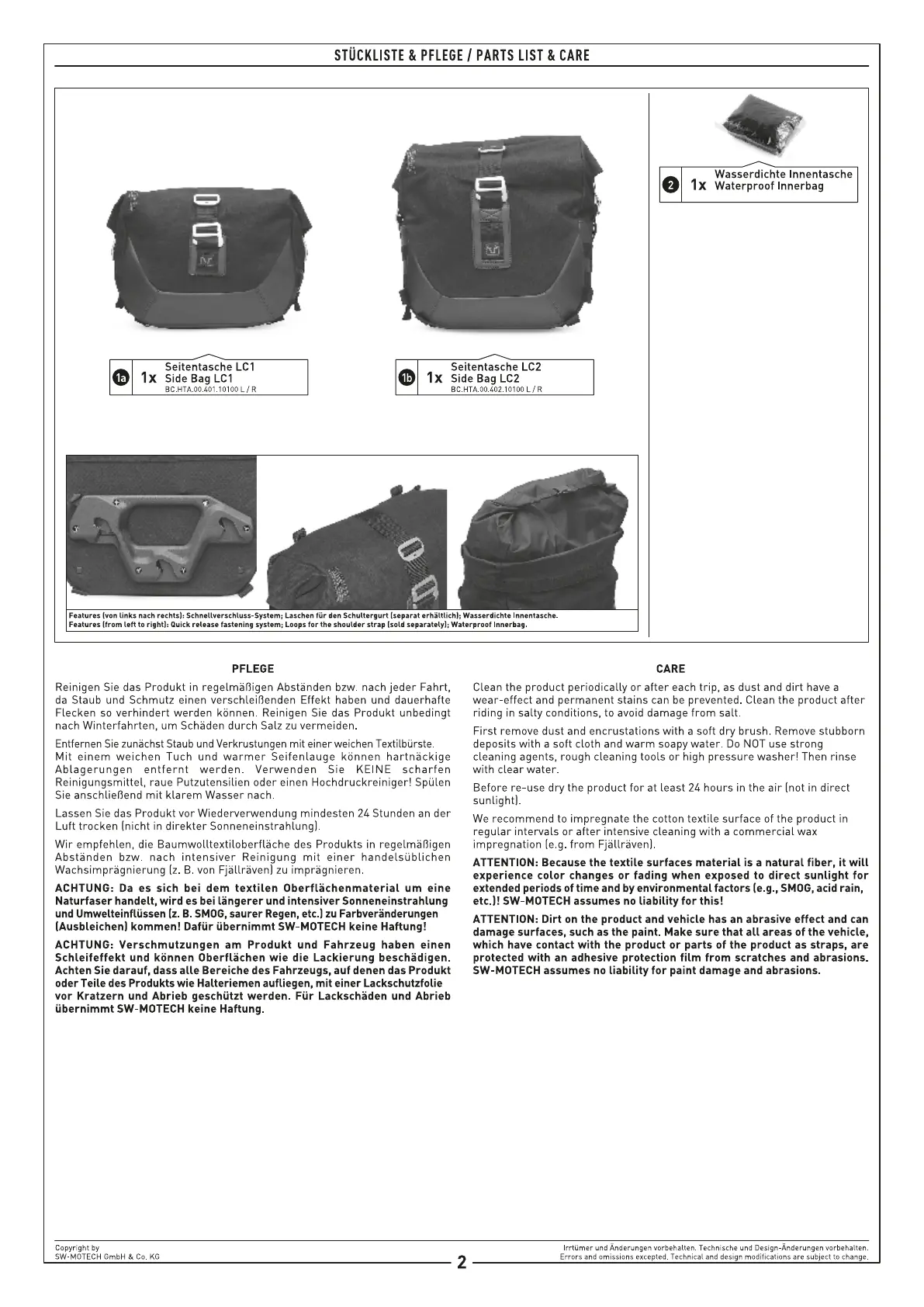 SW-Motech LC1 - Parts List and Care Instructions