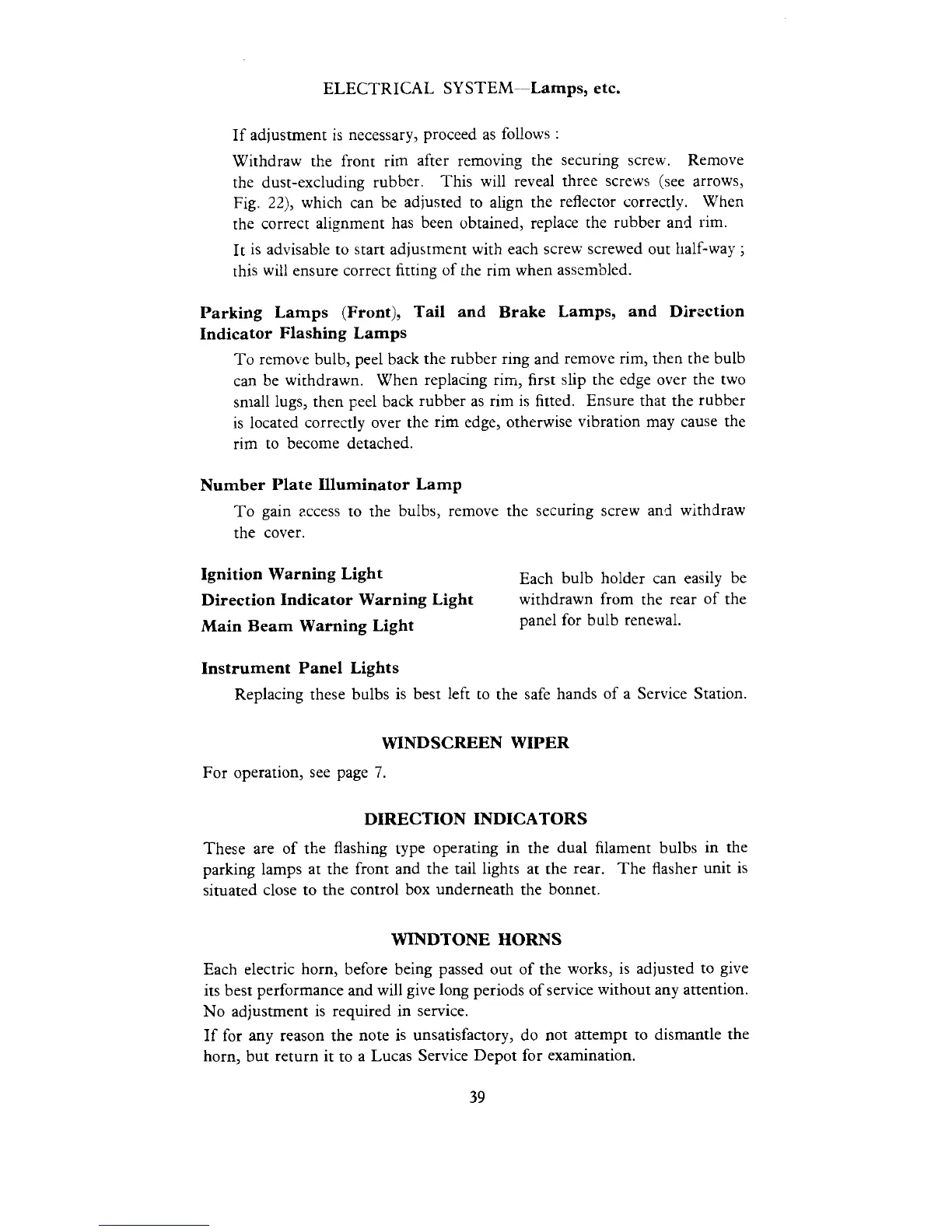 Parking Lamps (Front), Tail and Brake Lamps, and Direction