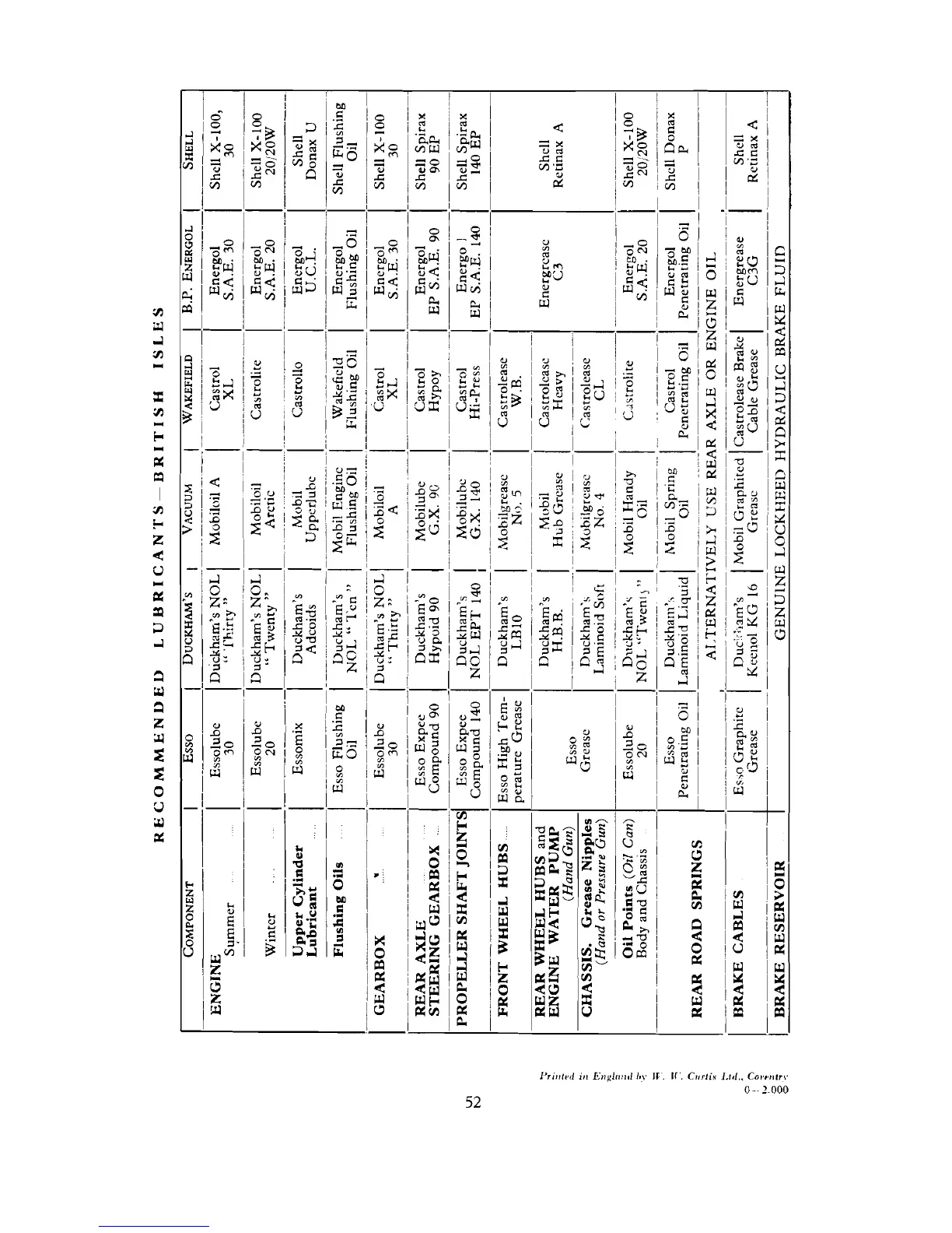 RECOMMENDED LUBRICANTS-BRITISH ISLES