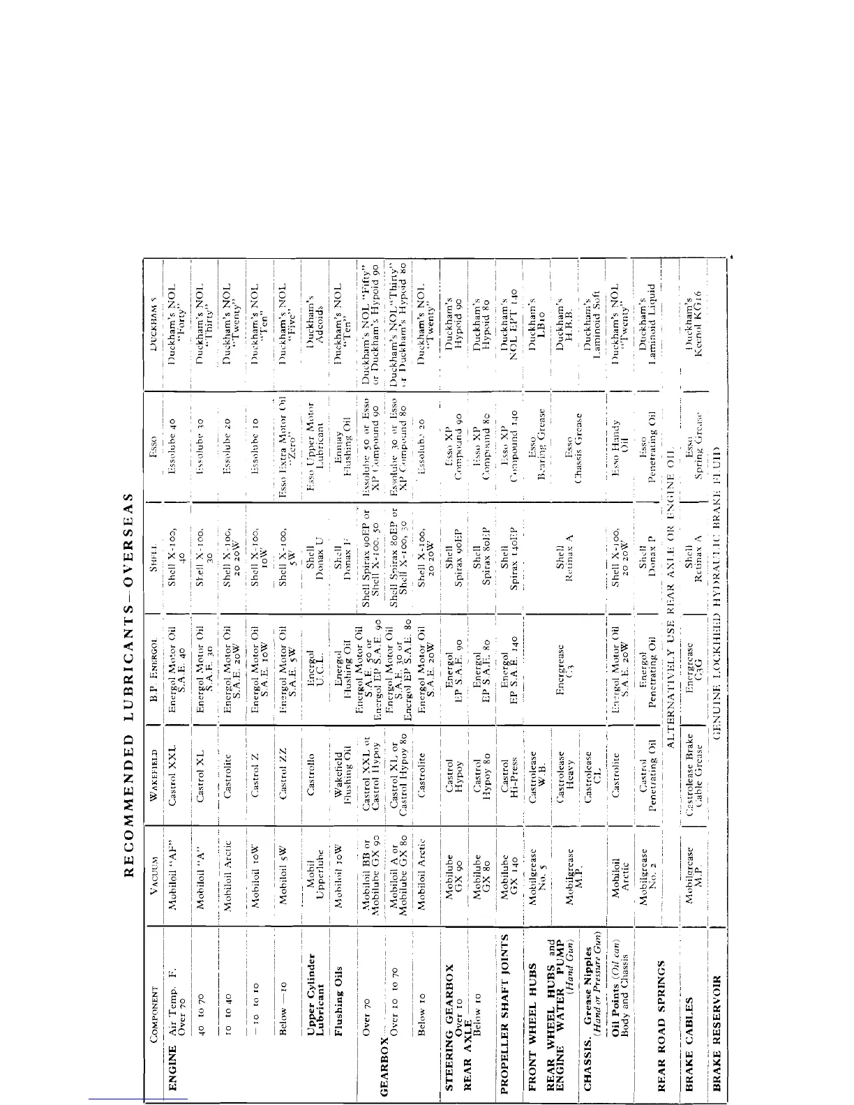 Swallow Doretti - Recommended Lubricants (Overseas)