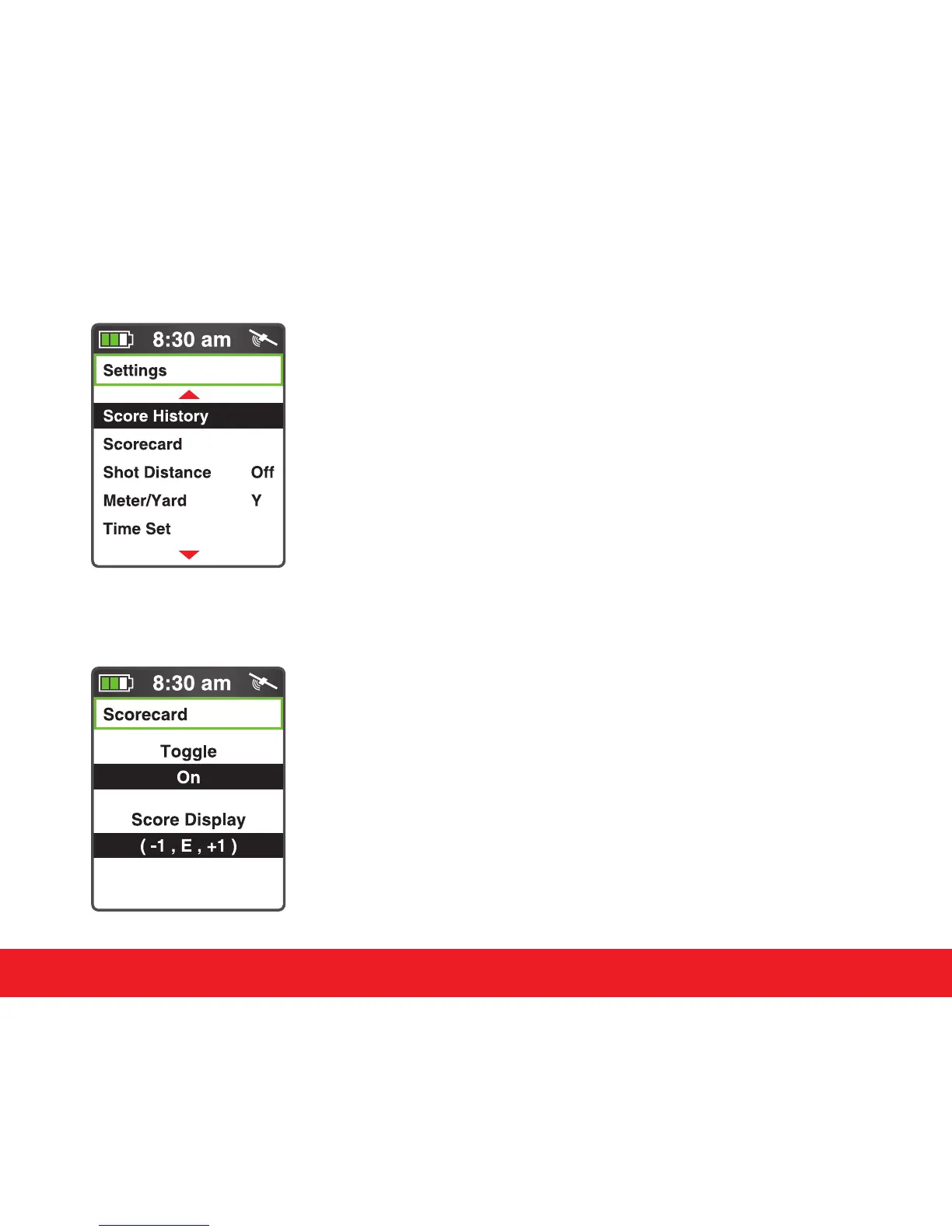 key. Press the [Up] key to toggle the Scorecard On/O.