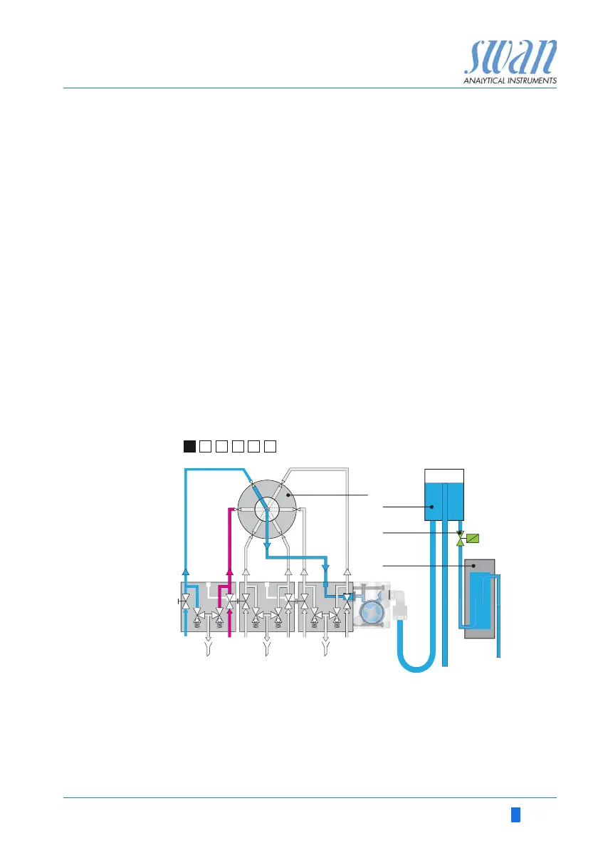 The 6-way valve [A] is on position 1 and the sample stream 1