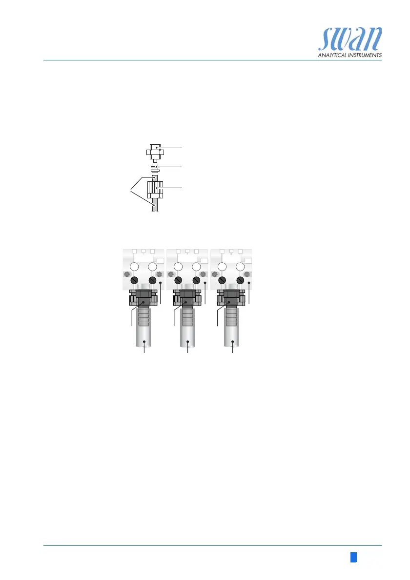 Sample inlet Use plastic tube (FEP, PA, or PE 4 x 6 mm) to connect the sample
