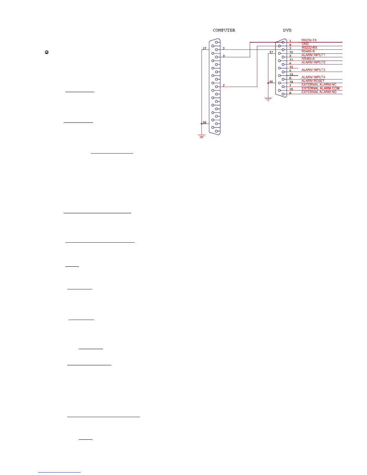 ALARM RESET ( PIN 14 ) can be used to reset both ALARM OUTPUT signal and DVR’s internal