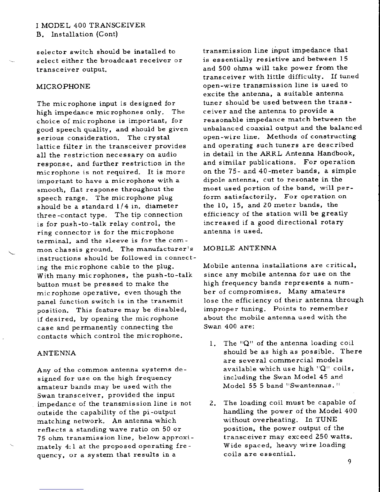 Swann 400 - Antenna Matching and Selection; Mobile Antenna Considerations