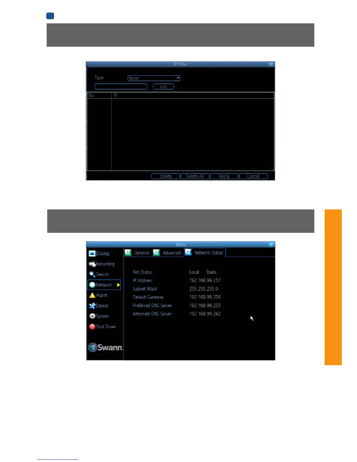 The IP Filter can be used to modify which IP addresses have permission to talk to the DVR and which do not.