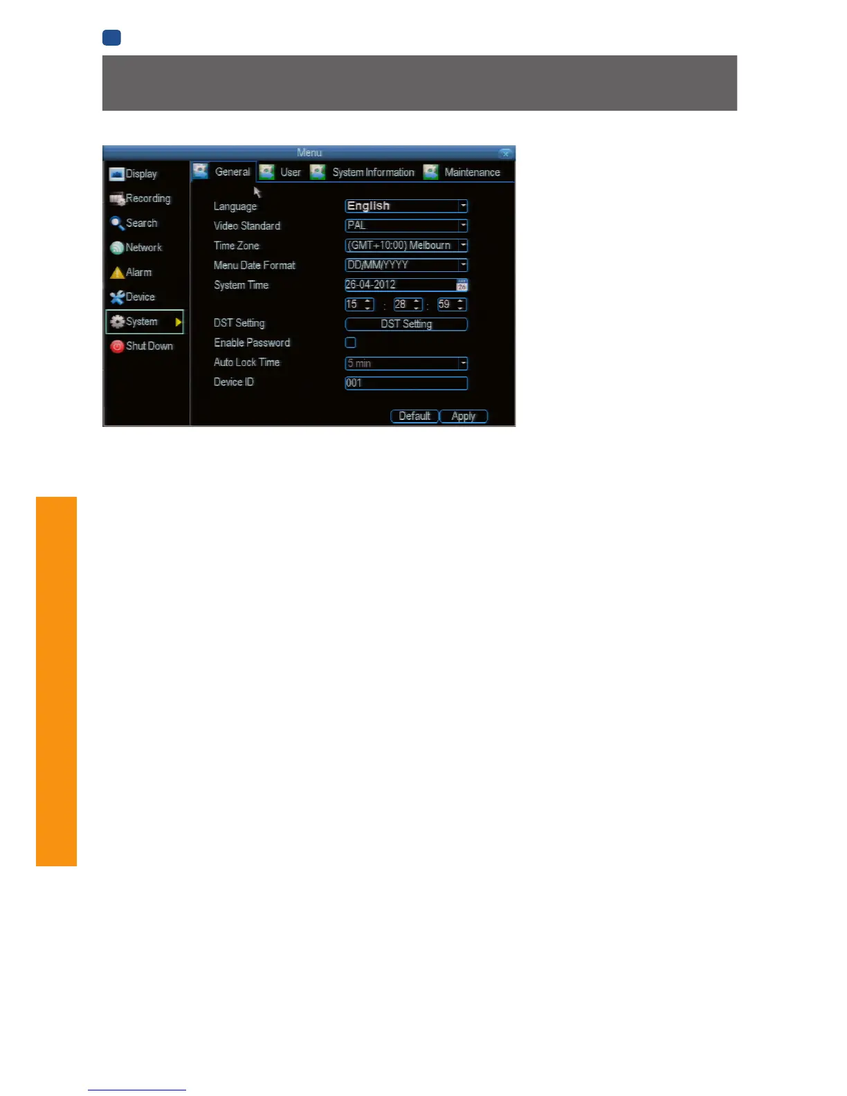 Language: The language that the DVR’s menus, alerts and other communications will use. This usually defaults to English.