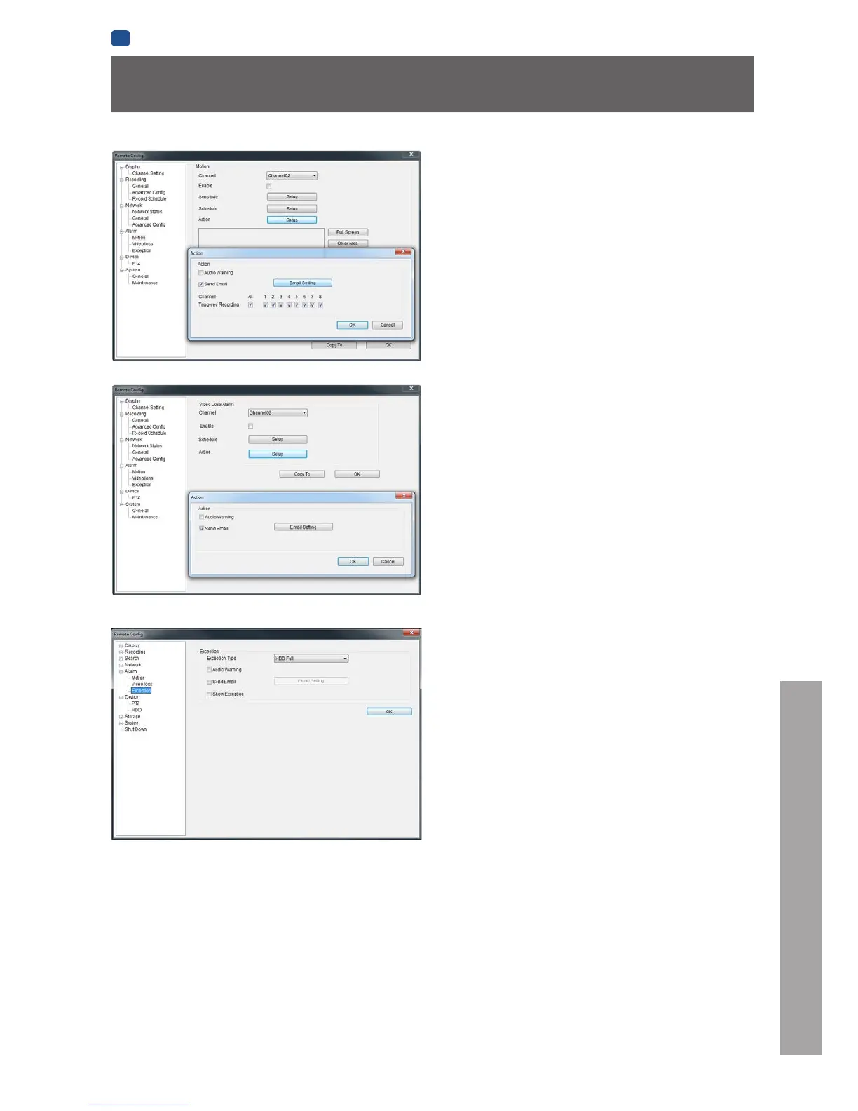 Action (Check boxes): Whether you’d like the DVR to send an
