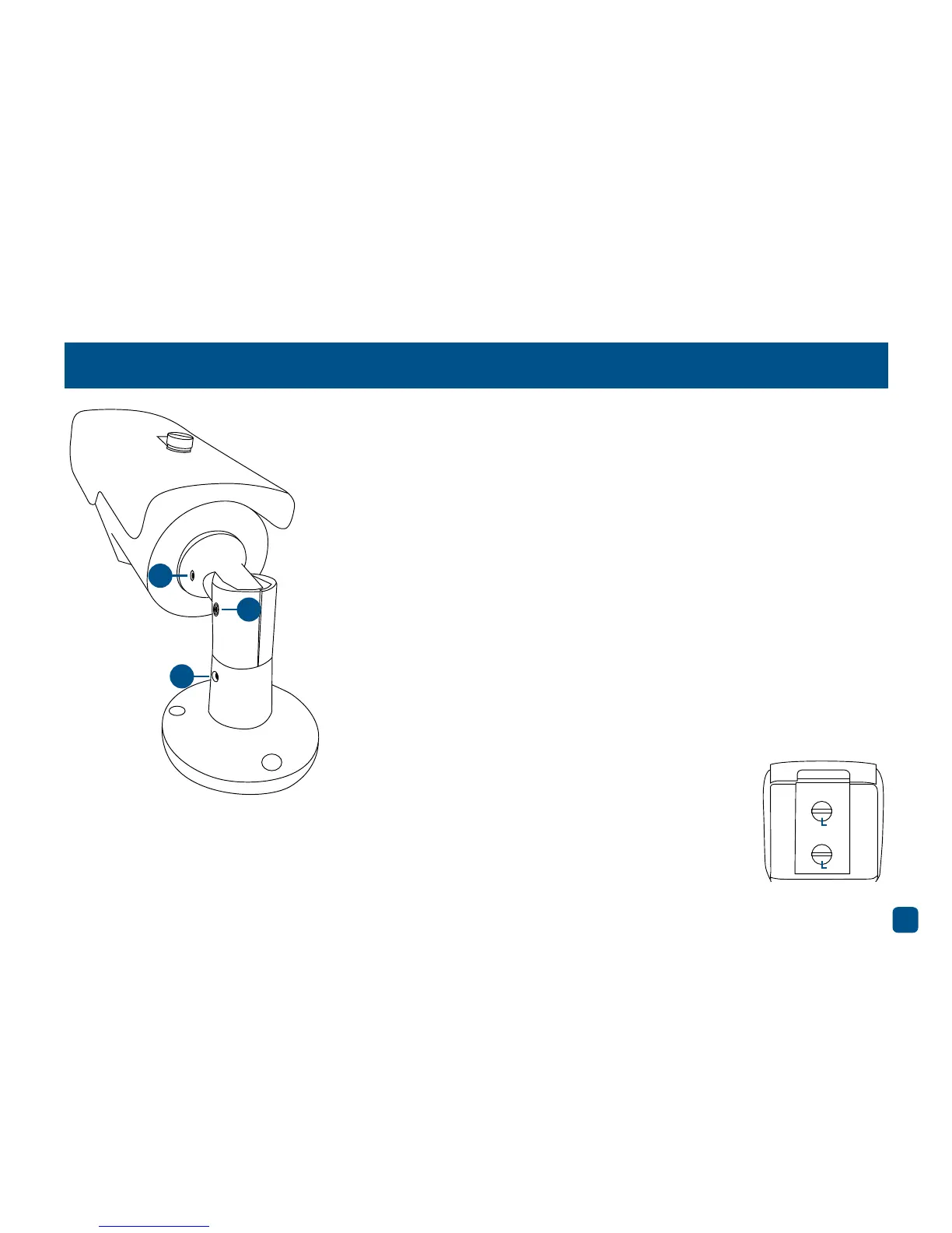 To rotate the camera left or right (3), loosen the hex screw on each side