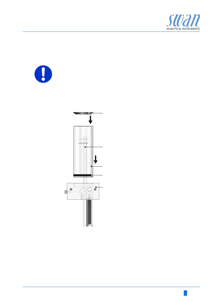 2 Push the constant head tube into the flow cell block [E].