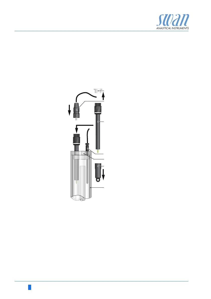 4 Insert the pH sensor into one of the holes in the constant head
