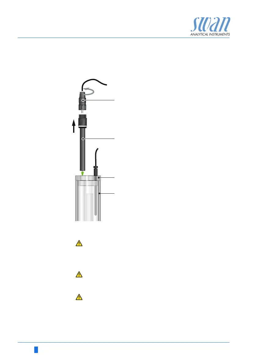 3 If necessary wipe the pH sensor shaft and the green tip cau-